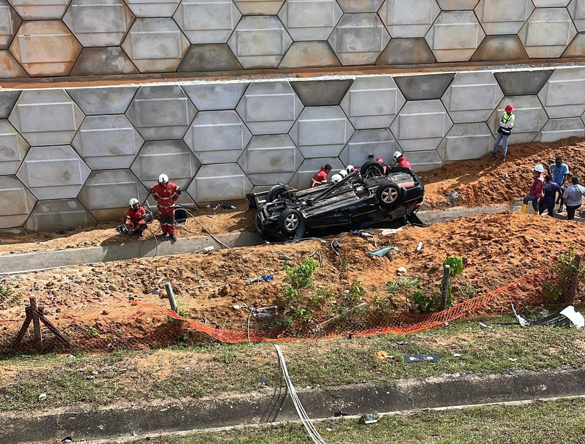 “Terdapat seorang lelaki tersepit di dalam kenderaan itu dan difahamkan kereta dipandu terbabas melanggar besi penghadang jalan sebelum jatuh ke bawah tebing,” katanya.