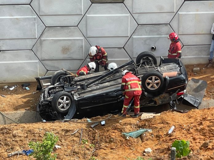 “Sepasukan bomba dari Balai Bomba dan Penyelamat Seremban 2 telah tiba di lokasi jam 10.20 pagi dan mendapati sebuah kereta jatuh ke bawah tebing setinggi 60 meter.