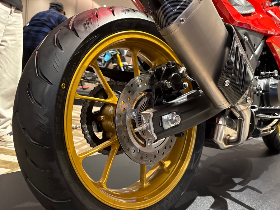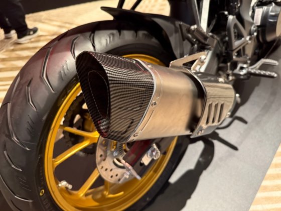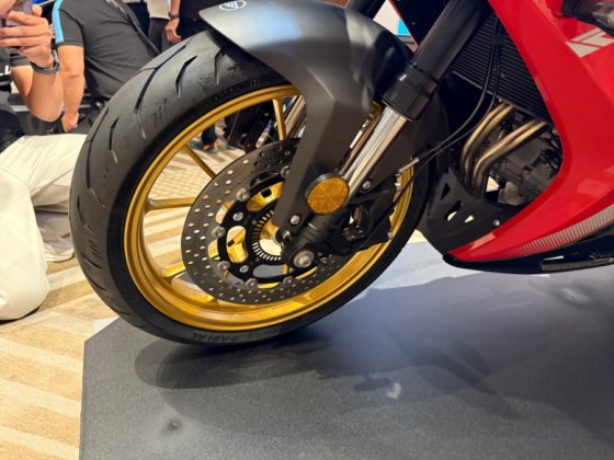 Sistem membrek pula hadir cakera depan 320 mmdengan kaliper 4-piston, manakala belakang 240 mm dengan kaliper 1-piston, dan kedua-duanya dipadankan ABS Dual Channel sebagai standard. Tayar depan bersaiz 110/70R17 dan belakang 150/60R17.