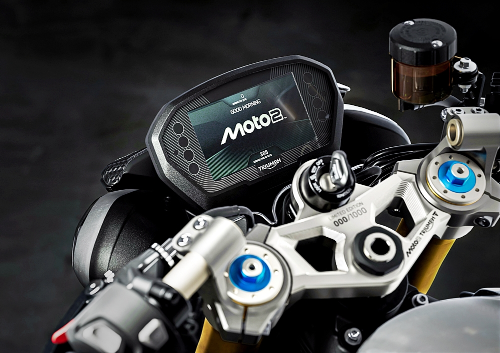 Street Triple Moto2™ Limited Edition ditawarkan pada harga £14,495 (RM 78,693.30) di United Kingdom.