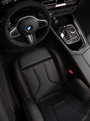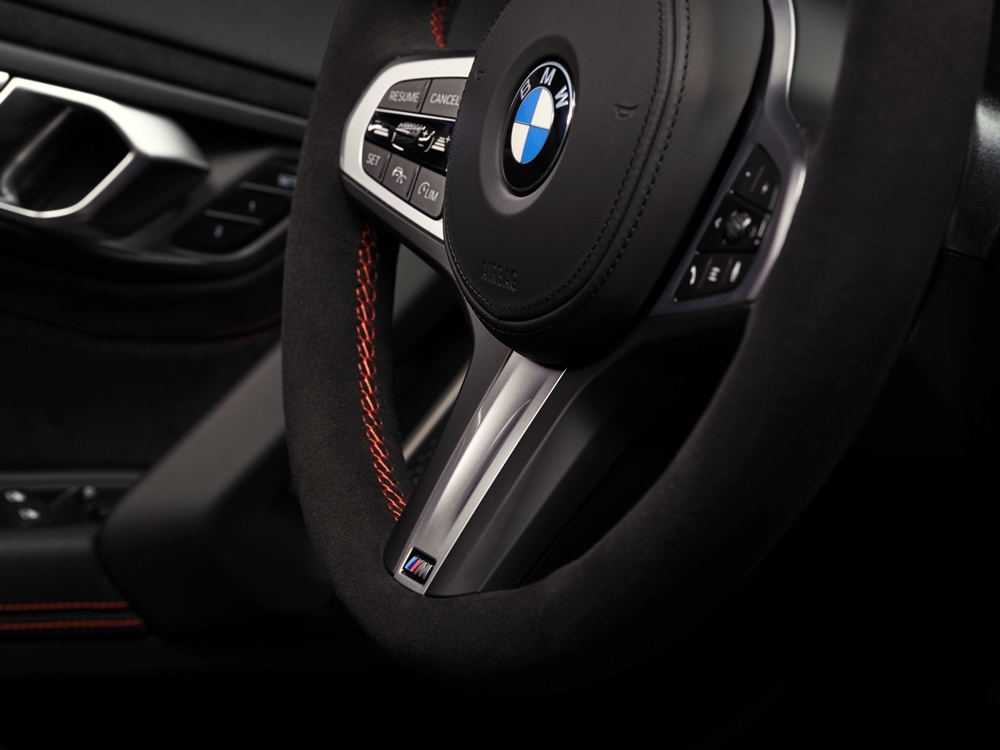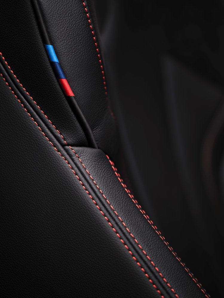 Jahitan ini turut digunakan pada papan pemuka, konsol tengah, kemasan pintu dan kerusi M Sport yang dibaluti Kulit Vernasca/Alcantara.
