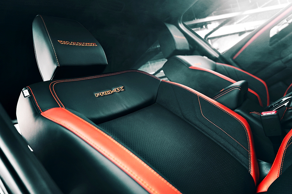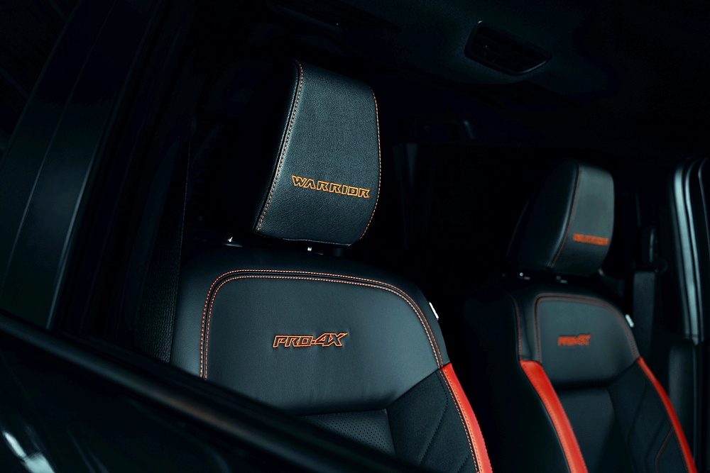- Ciri-ciri unik lain termasuk pendakap fender PRO-4X dengan elemen merah lava, tub liner, bantuan pintu belakang (tailgate assist) dan logo Warrior yang menyerlah