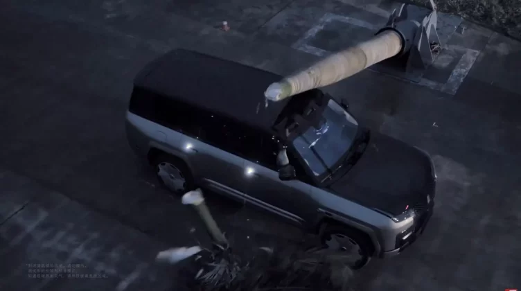 Untuk menunjukkan betapa teguhnya casis SUV ini, BYD membuat keputusan untuk menjatuhkan sebatang pokok kelapa ke atas struktur bumbung Yangwang U8.
