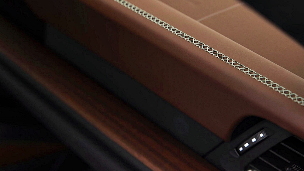 Corak tempahan khas ini menghiasi sisipan tempat duduk dan elemen utama but hadapan yang disalut kulit sepenuhnya.