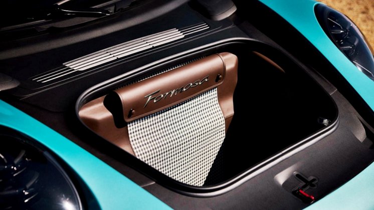 Perehat kepala membawa logo Formosa timbul, yang menggabungkan bentuk 911 Carrera T bersama corak ombak lautan dan puncak gunung.