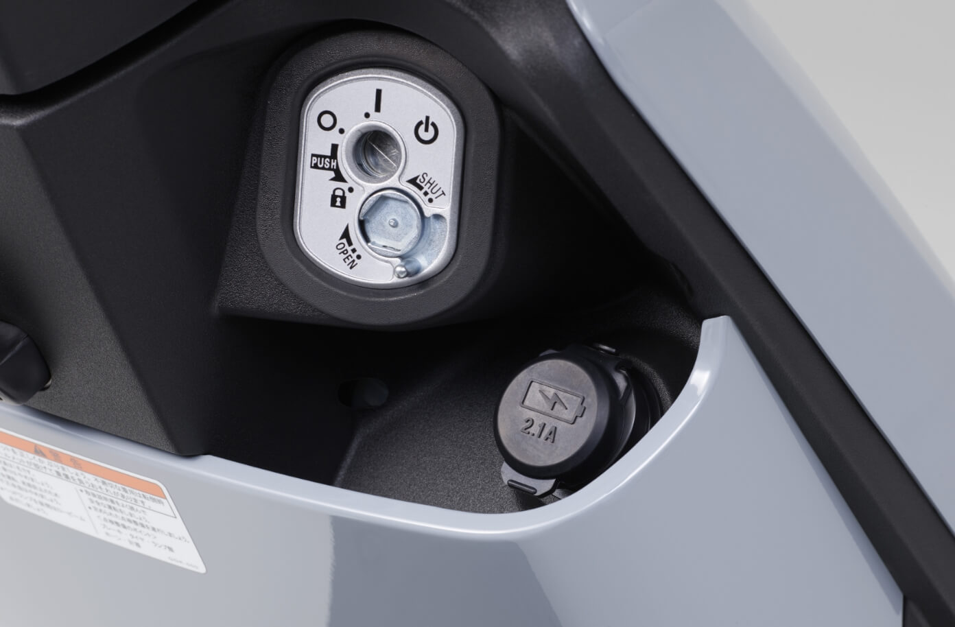 Ciri lain tersedia termasuklah rim 12 inci depan/10 inci belakang, sistem brek CBS, skrin paparan LCD, poket hadapan yang boleh memuatkan botol 500 ml, port pengecasan Type-A, dan cangkuk yang boleh menampung beban seberat 1 kg.