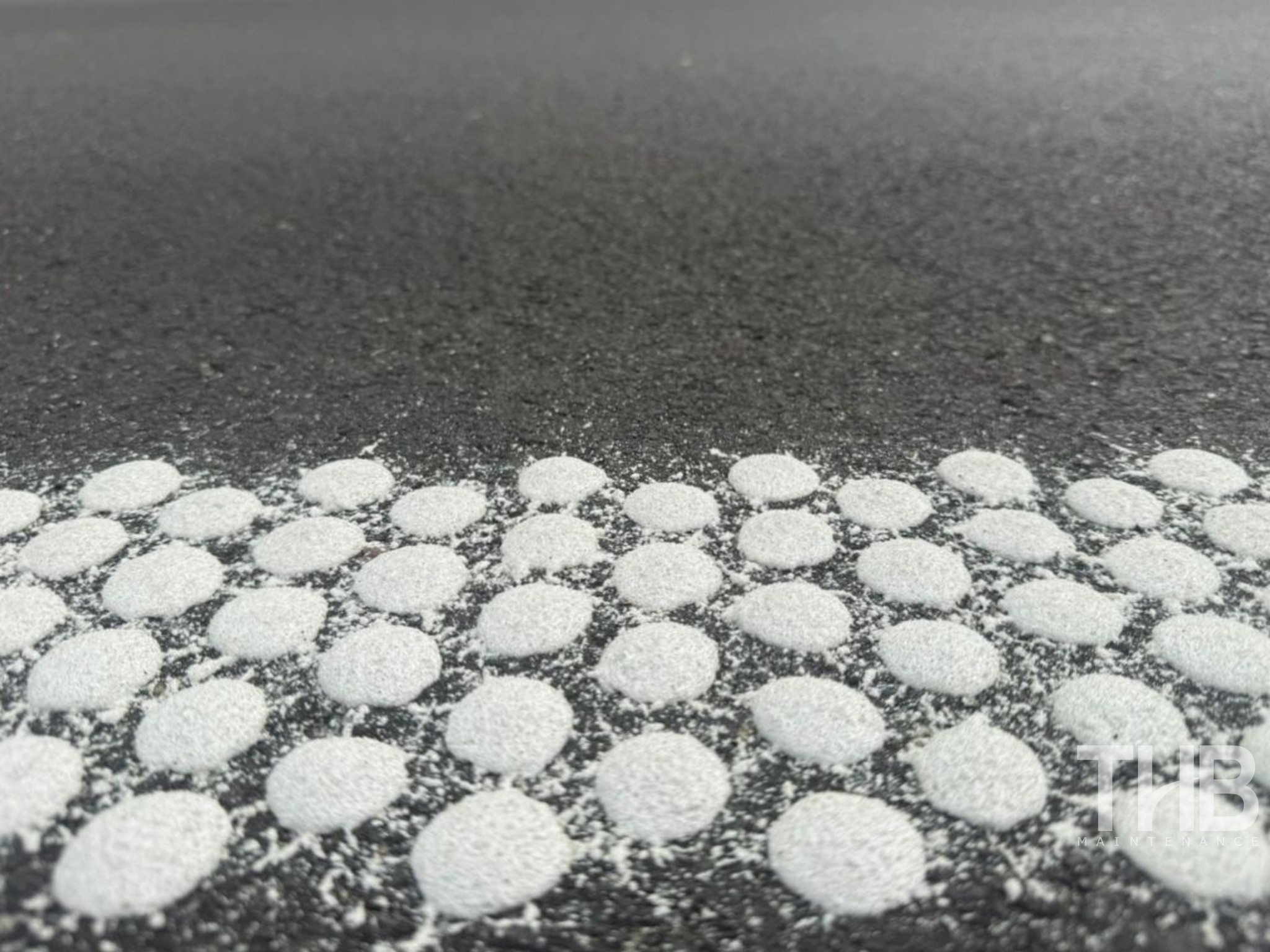 Secara visual, garisan jalan yang baru ini kelihatan seperti garisan konvensional. Tetapi apabila dilihat dengan lebih dekat, ia adalah gabungan unik cat berbentuk bulat kecil berwarna putih.