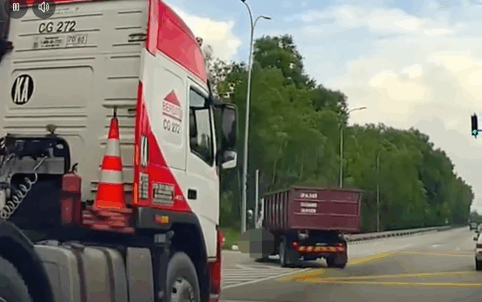 Kejadian itu dirakam dalam video berdurasi 30 saat yang tular di media sosial memaparkan sebuah lori membuat pusingan ke kiri selepas melepasi simpang sebenar ketika lampu isyarat bertukar hijau.