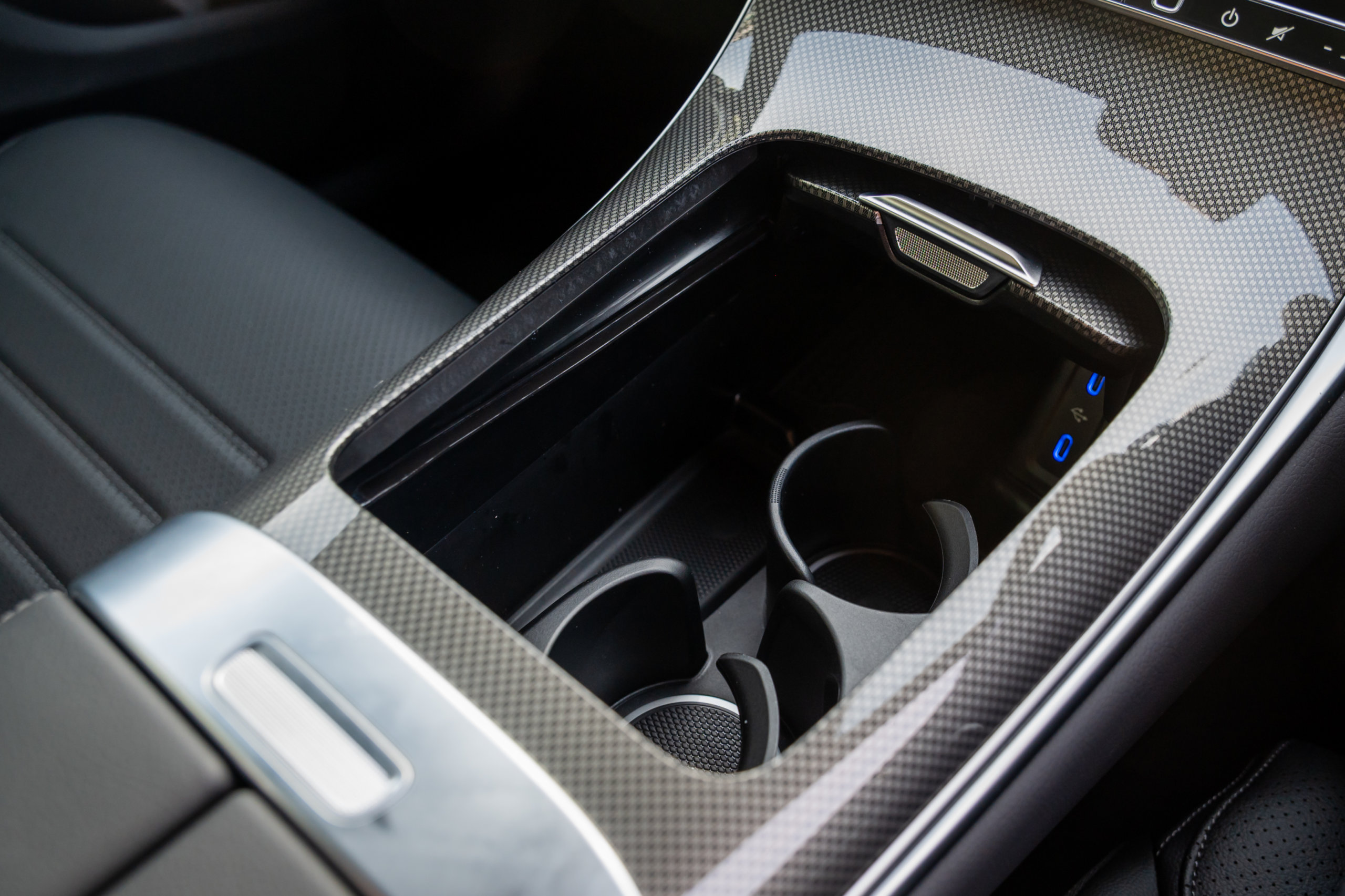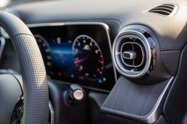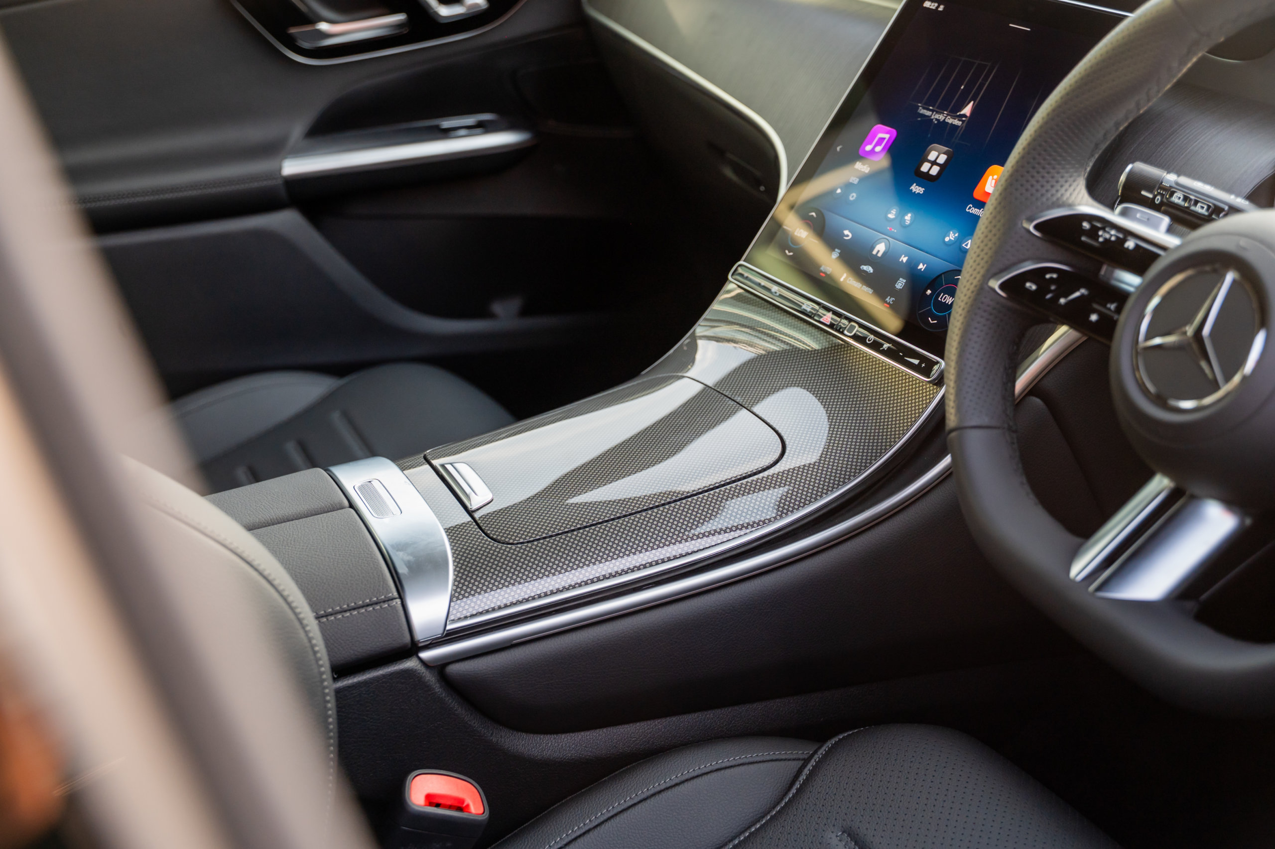 - Menampilkan dalaman AMG Line, termasuk upholsteri kulit tiruan ARTICO berwarna hitam, papan instrumen dan garis tali pinggang kemasan kulit tiruan ARTICO rupa nappa