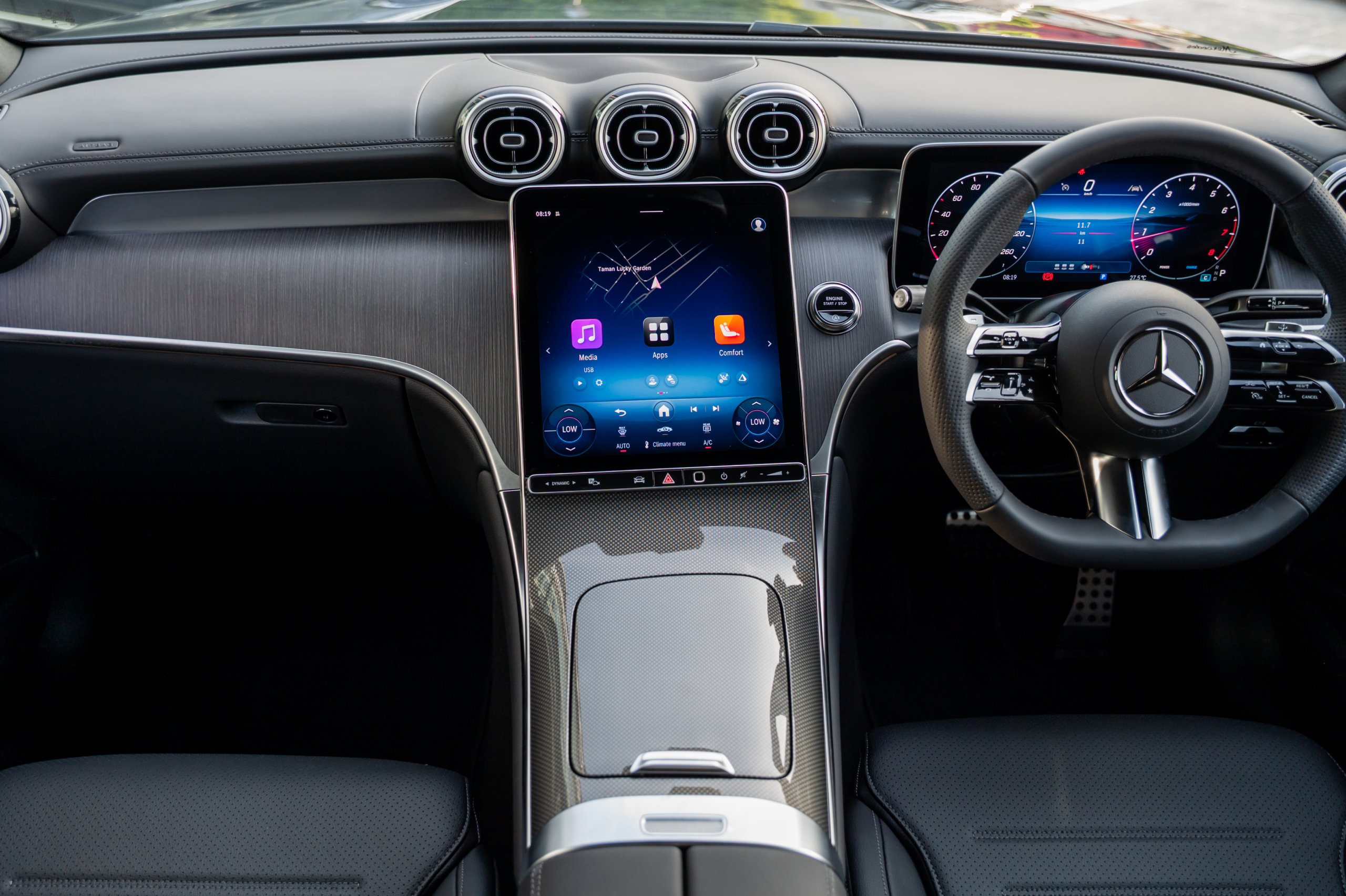 - Didatangkan dengan penggayaan AMG Line, yang terdiri daripada apron hadapan AMG dengan salur masuk udara sporty dan elemen kemasan krom serta apron belakang AMG dengan rupa diffuser.