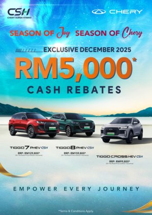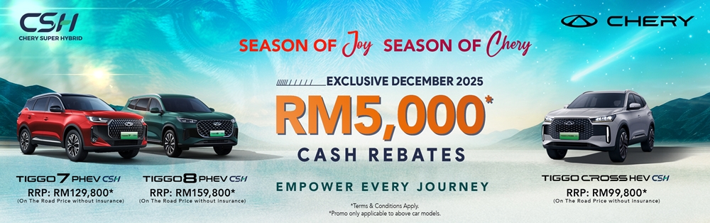 Bermula 9 Disember 2025 hingga 6 Januari 2026, pelanggan yang memandu uji mana-mana model PHEV Chery akan layak menyertai cabutan bertuah dengan jumlah hadiah sehingga RM200,000, termasuk hadiah utama TIGGO CROSS HEV.