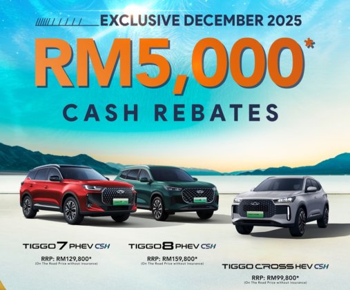 Model elektrifikasi terkini, TIGGO 7 PHEV dan TIGGO 8 PHEV, juga ditawarkan dengan rebat RM5,000, menjadikannya antara pilihan PHEV paling kompetitif dalam pasaran Malaysia.