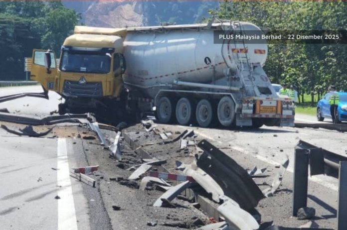 PLUS Malaysia Berhad menerusi aplikasi X memaklumkan, lori tangki tersebut melintang di tengah lebuh raya menyebabkan beberapa lorong terhalang.