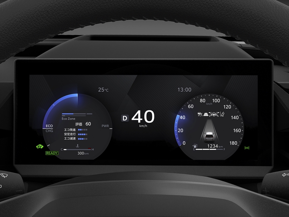 - Papar Pandu (HuD) Berwarna (Angled Display): Menggunakan paparan bersudut perspektif bagi memudahkan pengenalan maklumat dengan pilihan tiga mod paparan iaitu Full, Standard atau Minimum.