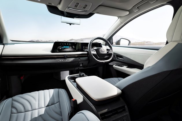 Bahagian kabin Nissan Ariya yang bertema menerima kemas kini estetik melalui pengenalan skim warna baharu White/Green.