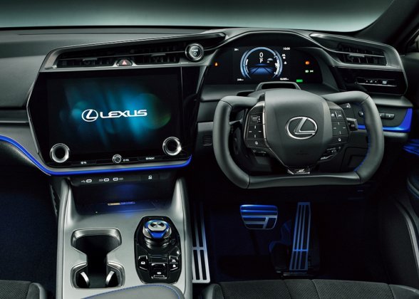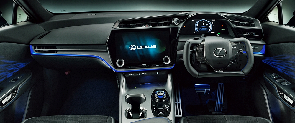 Riasan biru pada bahagian luaran menekankan identiti BEV prestasi tinggi Lexus.