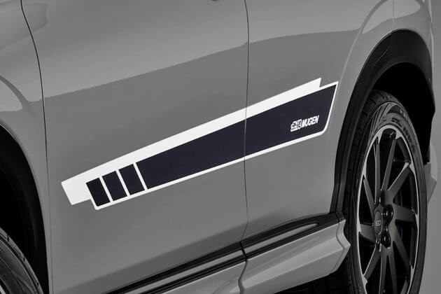 Turut diperkenalkan ialah grafik sisi (door side decal) baharu, direka dengan garisan memanjang ke bahagian belakang.