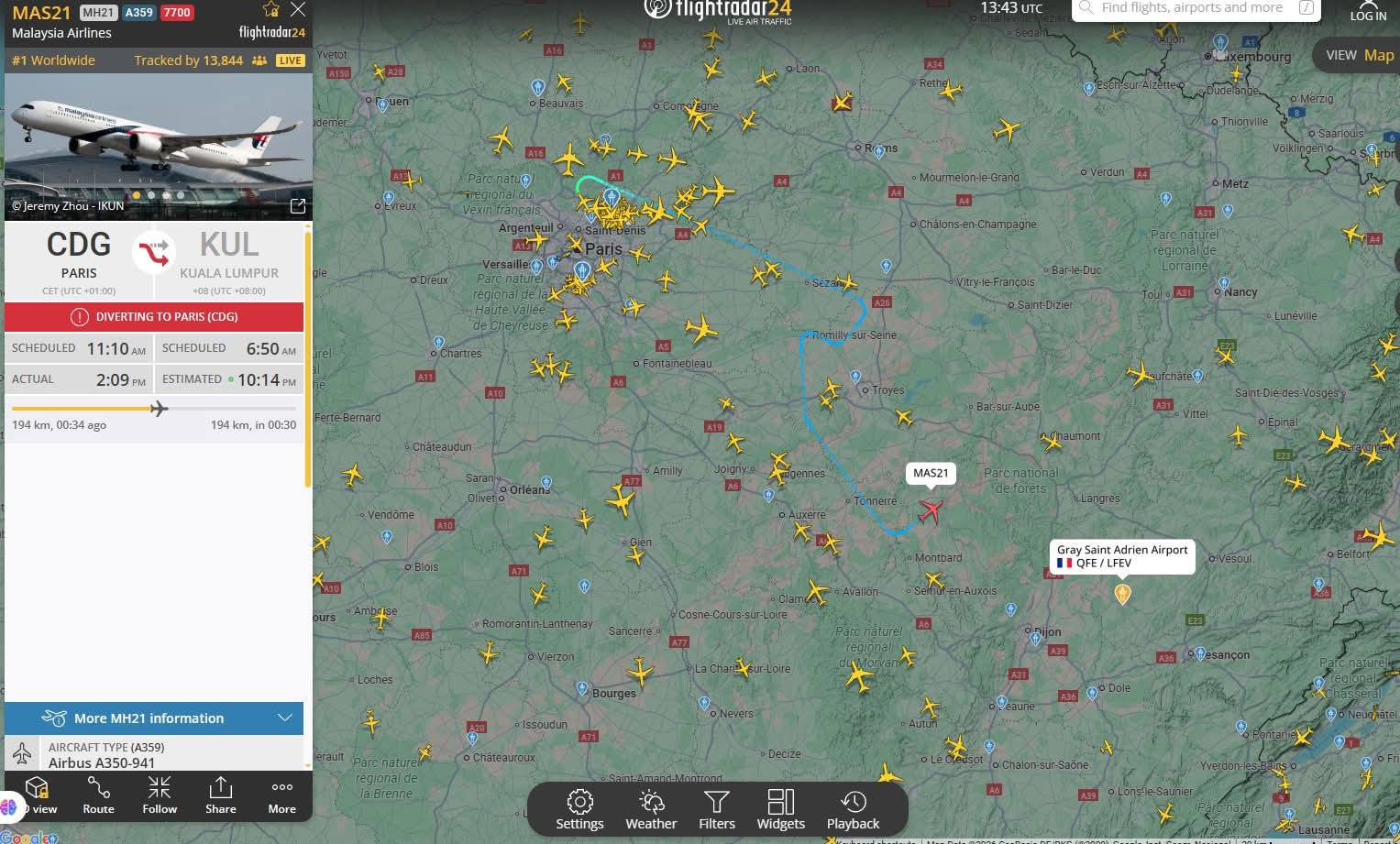 Malaysia Airlines mengesahkan pesawat Airbus A350 penerbangan MH21 dari Lapangan Terbang Charles de Gaulle, Paris (CDG) ke Lapangan Terbang Antarabangsa Kuala Lumpur (KUL), semalam mengalami masalah teknikal sebelum berpatah balik dan mendarat semula di CDG dengan selamat.