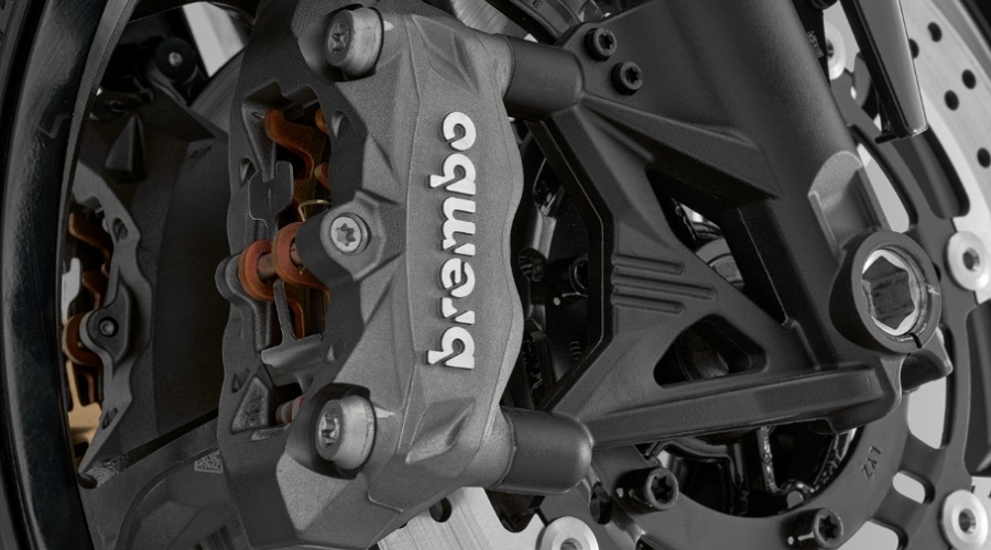 Sistem brek menggunakan cakera berkembar Brembo 320 mm di hadapan dan cakera 240 mm di belakang, lengkap dengan ABS dua saluran.