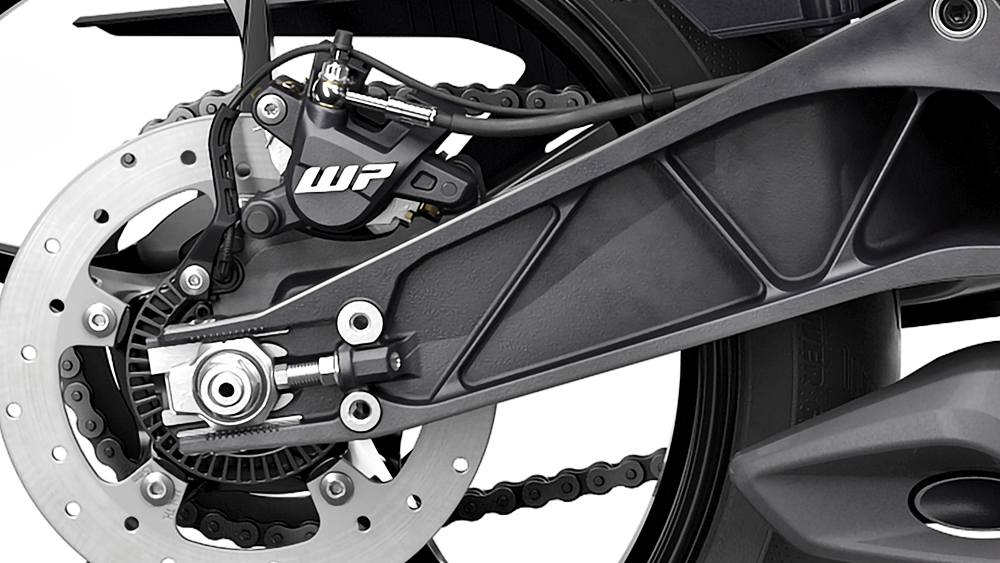 - Suspensi WP APEX boleh laras sepenuhnya dengan sistem linkage di bahagian belakang