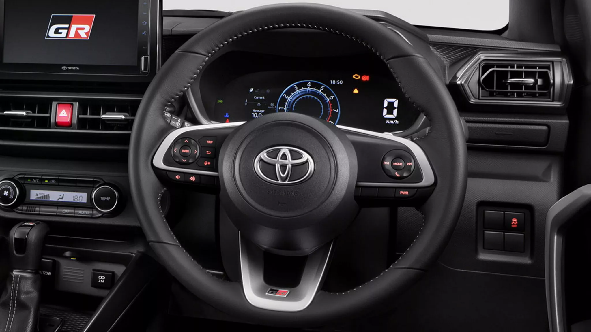 Ruang kabin turut diberikan imej yang lebih sporti dengan roda stereng berlogo GR, butang mod “Power”, logo GR pada tombol gear, serta kemasan jahitan kontras.