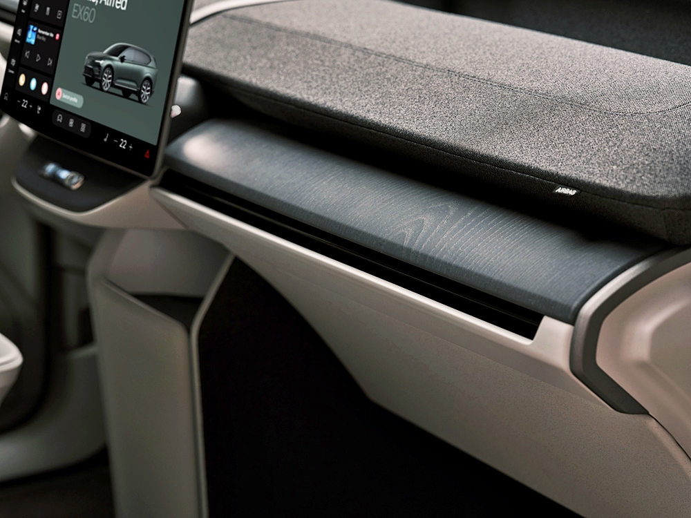 Ruang dalaman EX60 menerapkan prinsip reka bentuk Scandinavia dengan penggunaan bahan mewah semula jadi dan lantai rata untuk keselesaan ruang kaki.