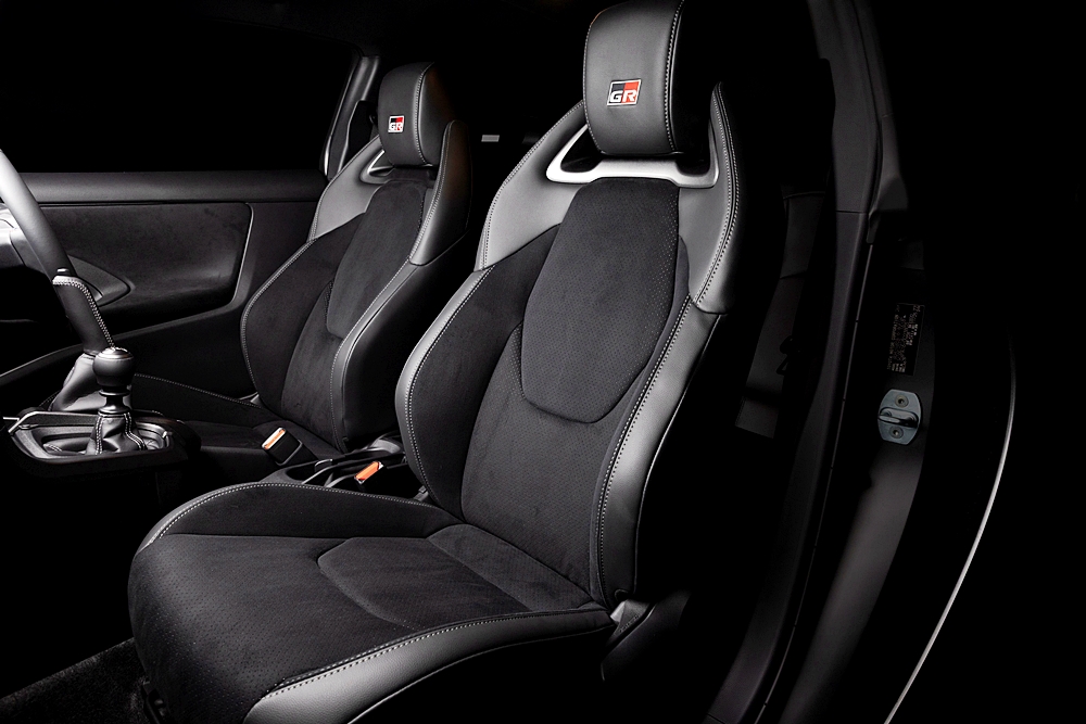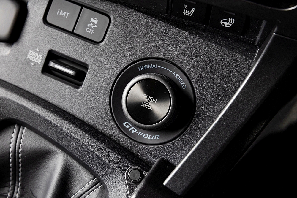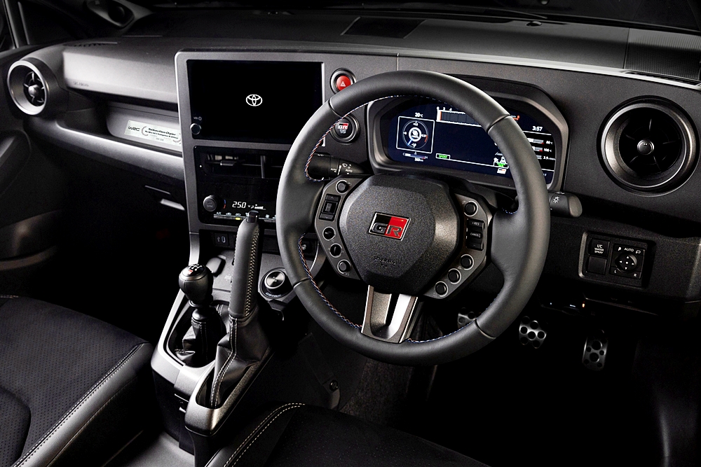 Stereng yang digunakan mempunyai diameter yang sedikit lebih kecil berbanding model asas dengan kedudukan suis pada stereng yang disusun semula secara bebas hasil maklum balas daripada jentera rali GR Yaris Rally2.
