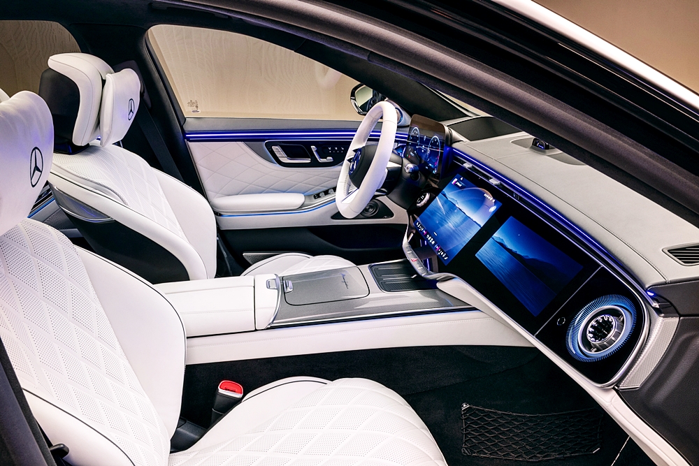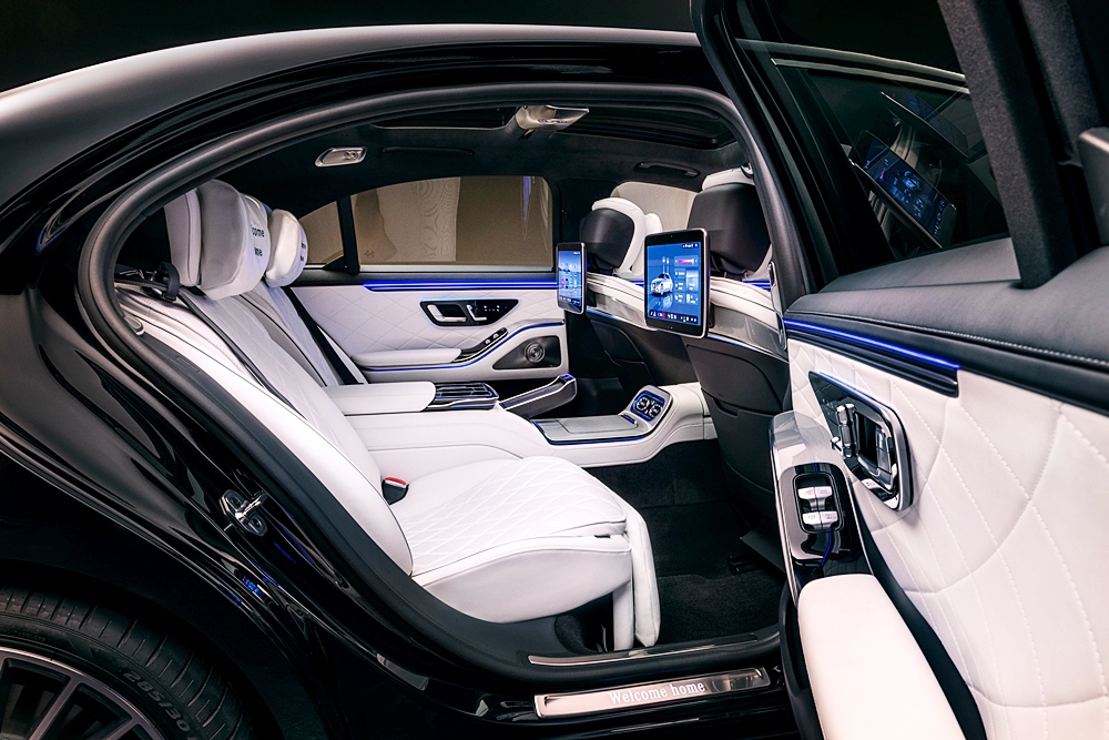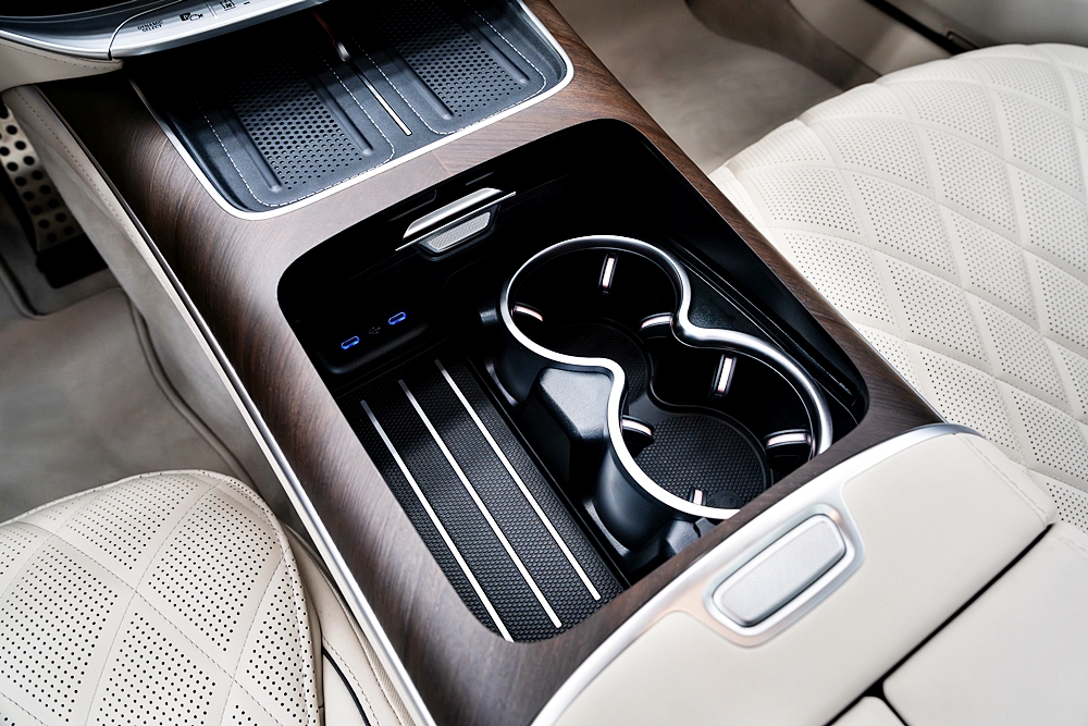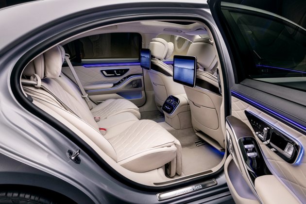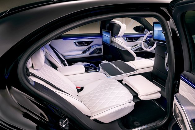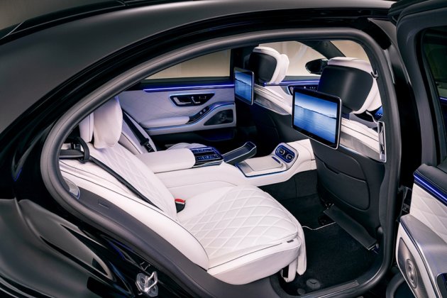 Bagi penumpang belakang, pilihan empat tempat duduk First-Class menyediakan konsol tengah penuh dengan ruang simpanan, pengecasan USB-C pantas, peti sejuk dan pemegang cawan dengan kawalan suhu.