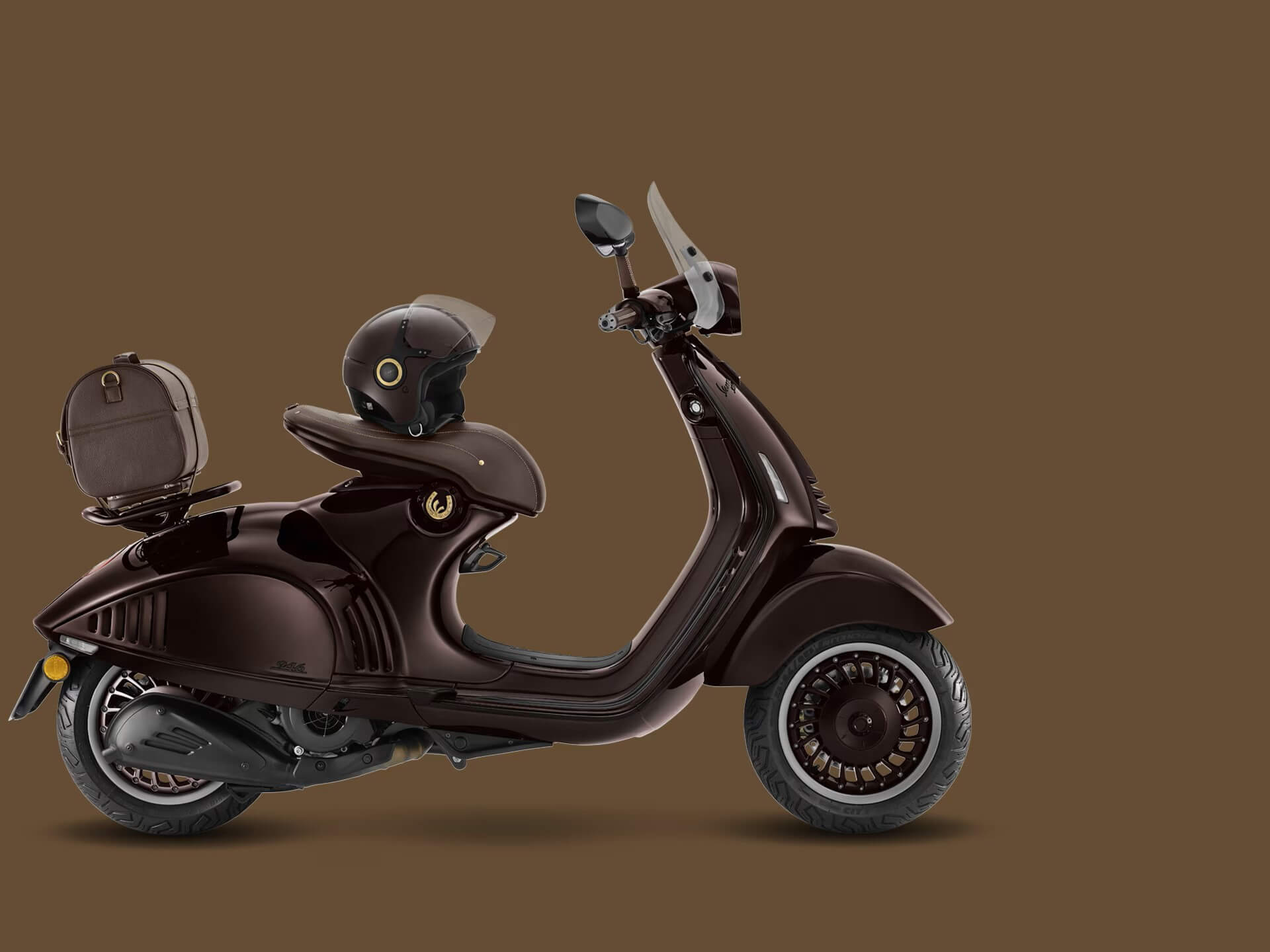 Selain itu, Vespa turut menawarkan aksesori untuk disesuaikan seperti beg kulit yang diperbuat daripada bahan sama seperti pelana, helmet coklat gelap berkilat dan skrin penghadang angin yag lebih tinggi.