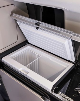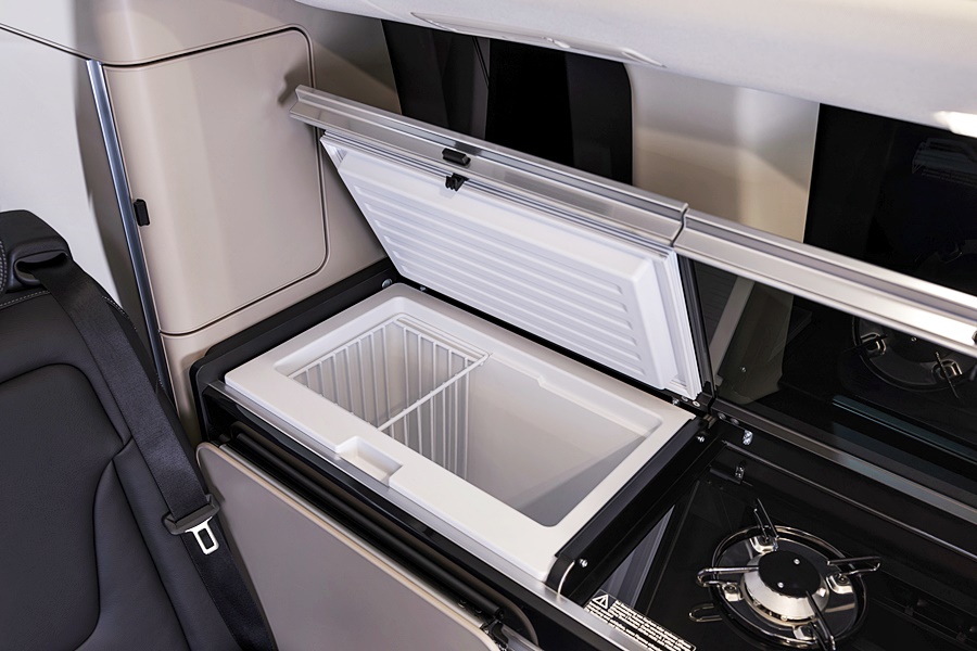 - Meja lipat telah diperkemas, laci bergerak lebih lancar, serta dilengkapi panel kawalan bangku belakang baharu dan peti sejuk lebih jimat tenaga.
