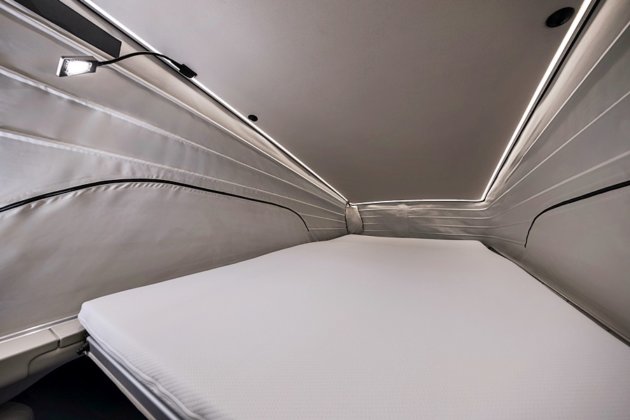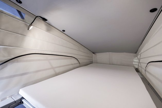 Apabila bahagian belakang bumbung dinaikkan sepenuhnya, ia kini menawarkan tambahan ruang kepala sebanyak 100 mm yang menjadikan suasana tidur dan rehat lebih luas.