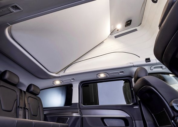 Suasana di dalam kabin dipertingkatkan dengan lampu LED pada bumbung angkat dengan pilihan tona sejuk yang menyegarkan atau tona hangat untuk berehat.