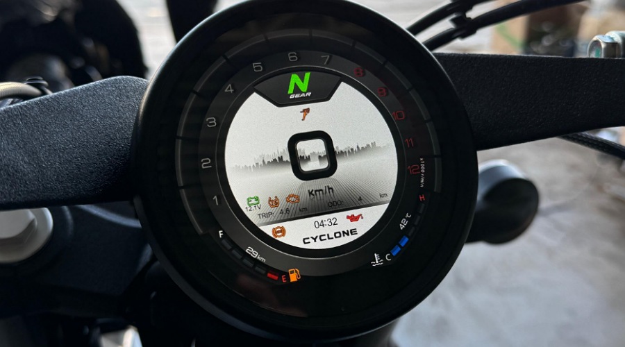 Bagi pengalaman tunggangan lebih pintar, Cyclone RA600 dilengkapi sambungan Bluetooth yang menyokong aplikasi pihak ketiga – Carbit Ride – membolehkan navigasi, paparan skrin dan notifikasi panggilan terus pada meter.
