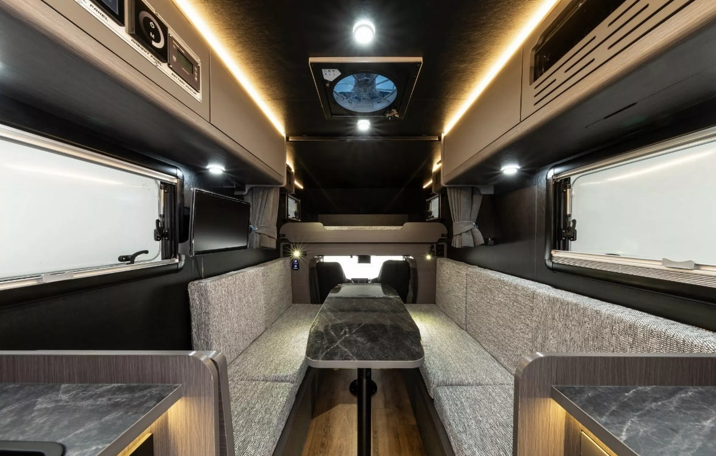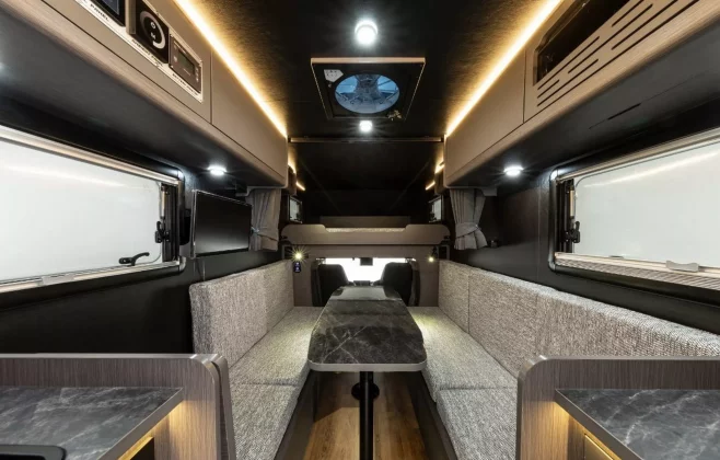 Semua kelengkapan ini dikuasakan bateri lithium-ion 100Ah, dengan pilihan naik taraf ke 200Ah. Panel solar 100W juga ditawarkan untuk tambah masa off-grid.