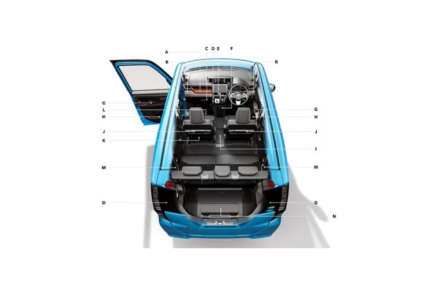 Selain itu, mekanisme dive-in membolehkan kerusi belakang dilipat rata sepenuhnya untuk mengangkut barangan besar dengan panjang kargo melebihi 1,500 mm.