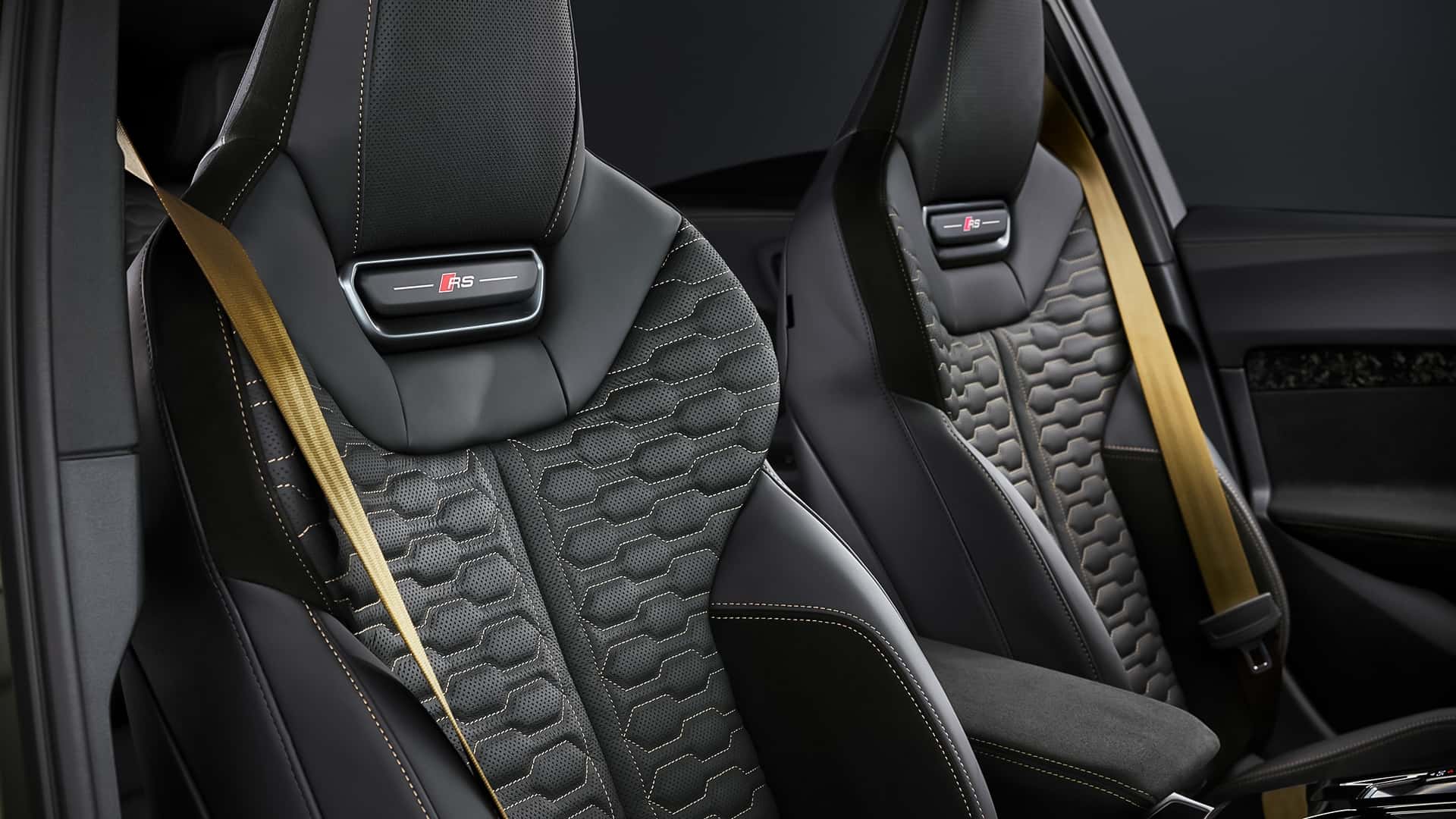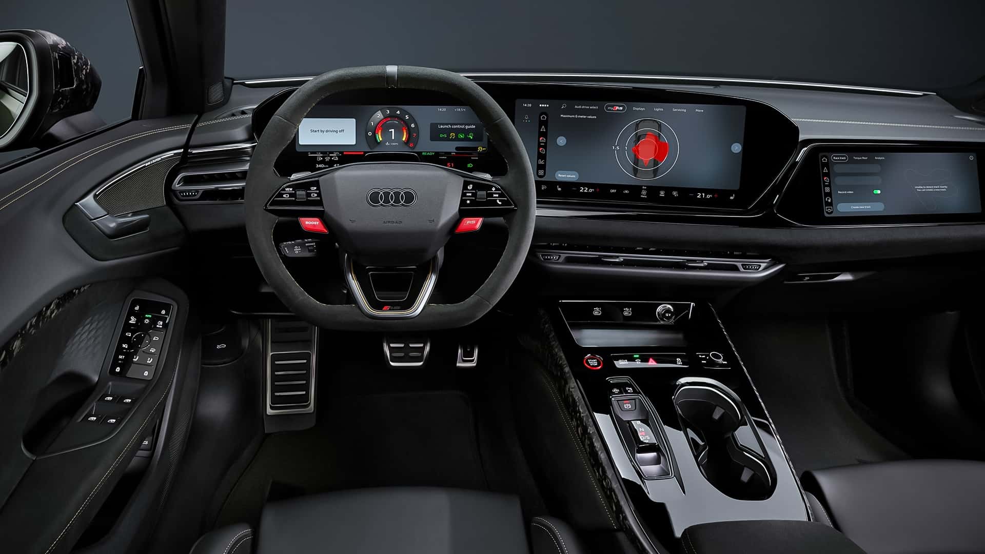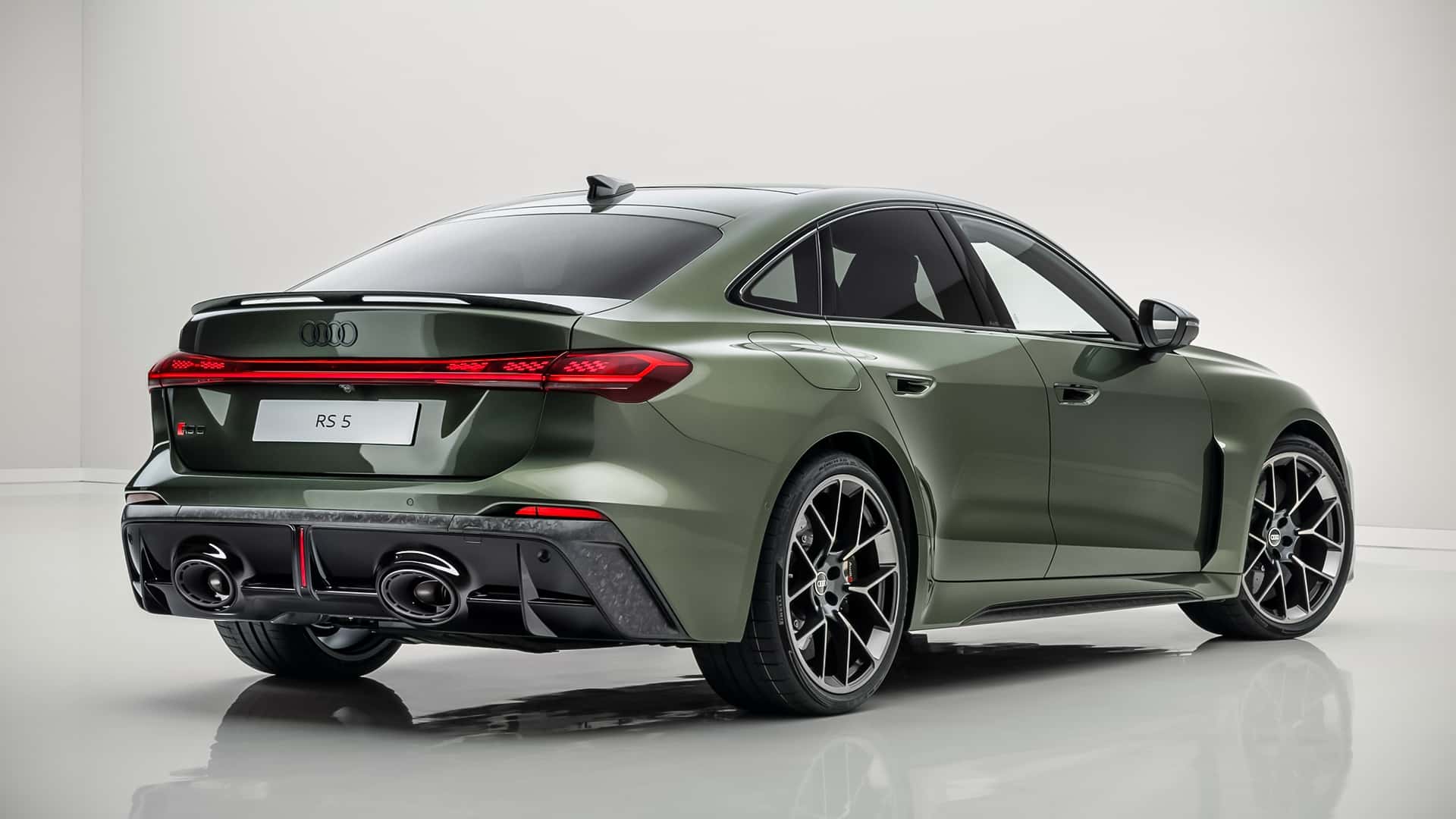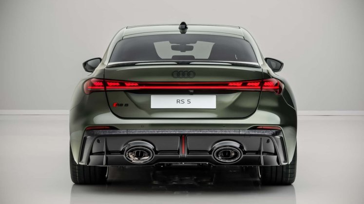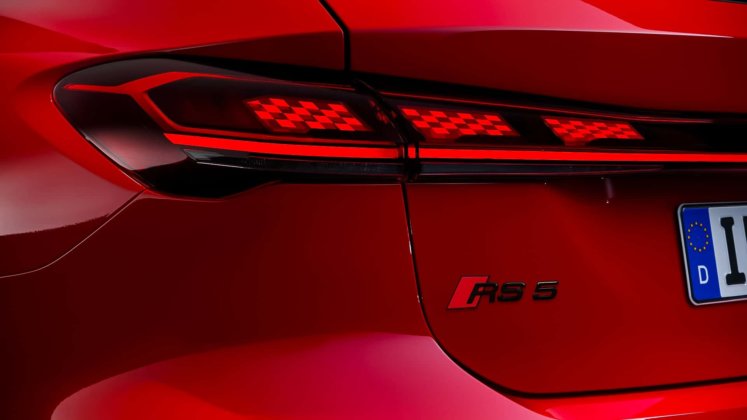 Model RS ini juga 9 cm lebih lebar daripada A5 standard, dengan pilihan brek seramik dan rim 20 atau 21 inci. Rekaan belakang pula menampilkan lampu OLED dengan motif bendera perlumbaan.