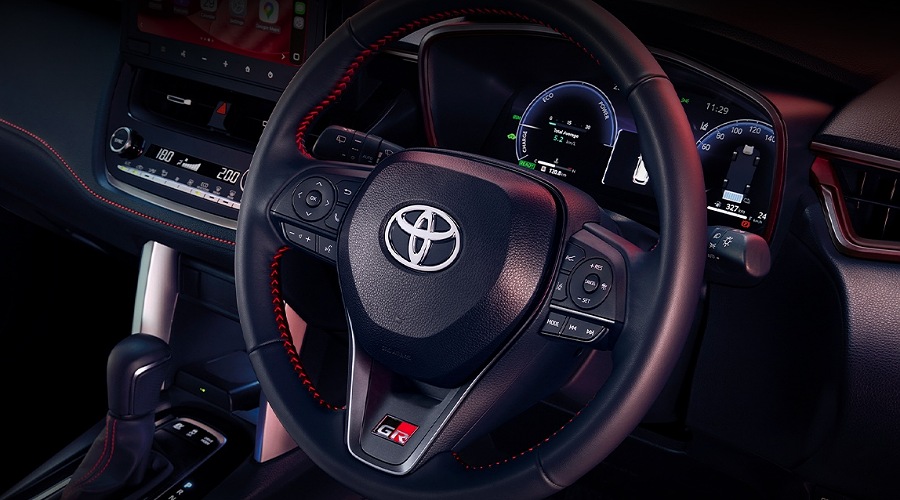 Kelengkapan lain termasuk paparan meter digital 12.3-inci, skrin infotainmen 10.1-inci dengan Apple CarPlay & Android Auto tanpa wayar, sistem audio enam pembesar suara, pendingin hawa automatik dua zon dengan corong belakang, tempat duduk pemandu larasan kuasa 8 hala, tempat duduk belakang boleh lipat 60:40 dan boleh laras sandar, empat mod pemanduan (Power, Eco, Normal, EV), brek parkir elektronik, pengecas tanpa wayar dan upholsteri kulit hitam dengan jahitan merah serta sulaman GR.