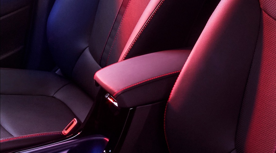 Sebelum ini hanya jahitan merah digunakan, kini kemasan merah turut menghiasi panel instrumen serta trim pintu.