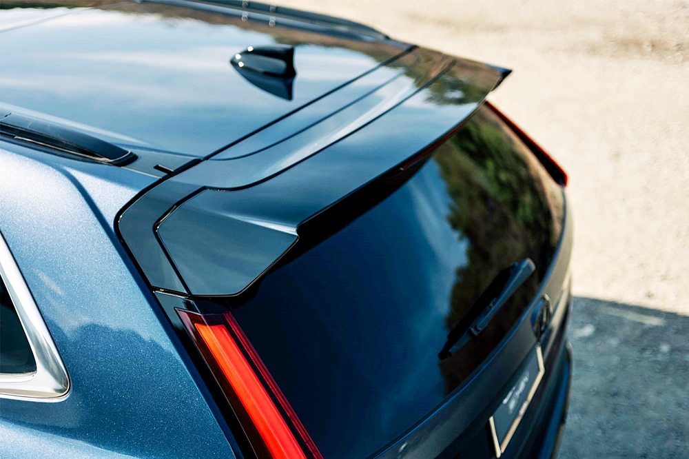 Penampilan ini disempurnakan lagi dengan spoiler bumbung yang bukan sahaja sebagai hiasan tetapi melancarkan aliran udara. Turut disertakan emblem hitam yang eksklusif.