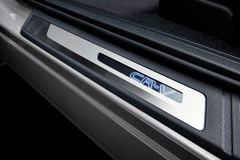 Selain itu, terdapat pemijak sisi yang diperbuat daripada keluli tahan karat dengan logo CR-V yang menyala mengikut bukaan pintu.