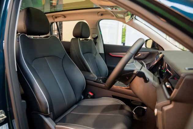 - Lima tempat duduk dibalut kemasan kulit dengan kemasan berwarna putih bersama fungsi ventilasi.