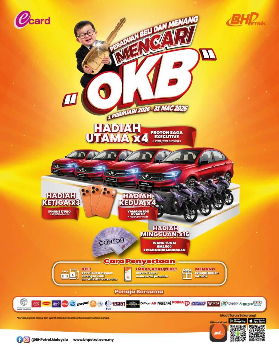 Berita baik, BHPetrol kini melancarkan kempen “Peraduan Beli dan Menang, Mencari OKB” dengan hadiah bernilai lebih RM300,000 untuk dimenangi termasuklah 4 unit Proton Saga Executive, 4 Yamaha Ego Avantiz dan 3 iPhone 17 Pro.