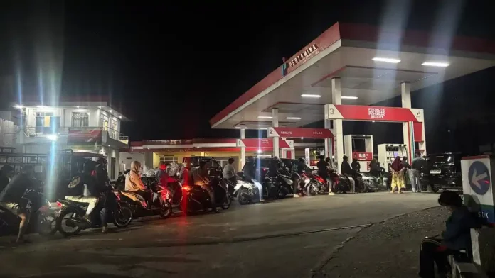 Tinjauan di lapangan menunjukkan barisan kenderaan sepanjang lebih 100 meter di beberapa lokasi, seperti stesen minyak Sabtuan, SPBU Teuku Umar (Tegal Besar) hingga di kawasan Jalan Gajah Mada.