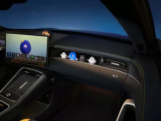 Susun atur ruang kabin mendedahkan beberapa perincian seperti skrin kluster digital yang kecil, skrin infohibur tengah, serta tambahan skrin ketiga untuk penumpang yang sudah menjadi trend EV moden di China.