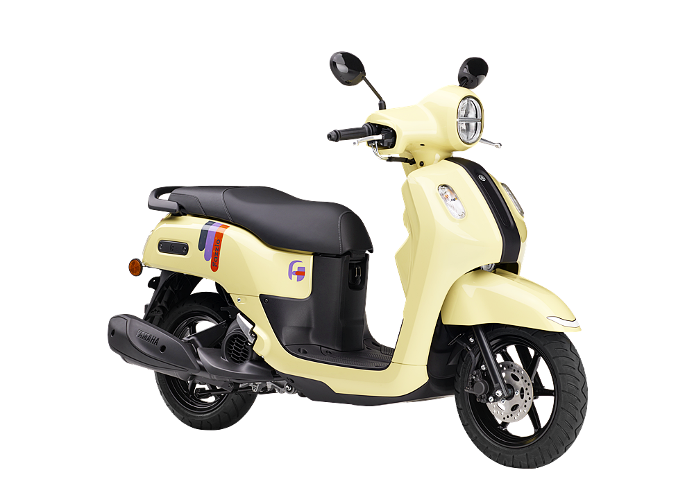 Selain itu, terdapat perincian Vertical Icon pada bahagian hadapan yang mengekalkan warisan gaya skuter fesyen Yamaha.
