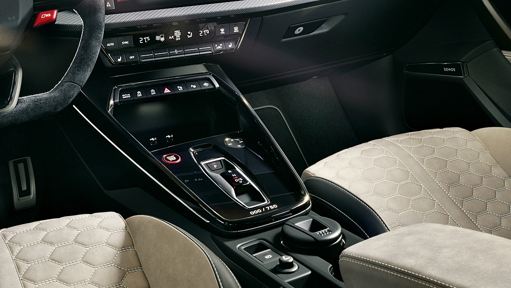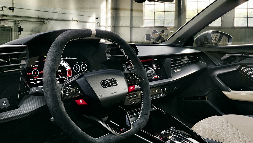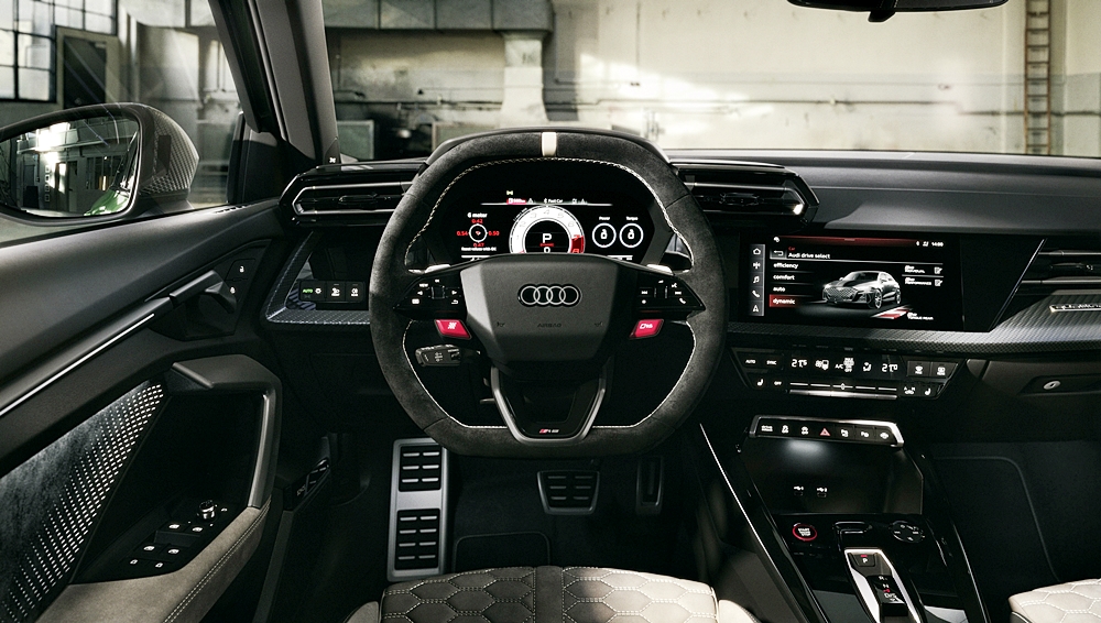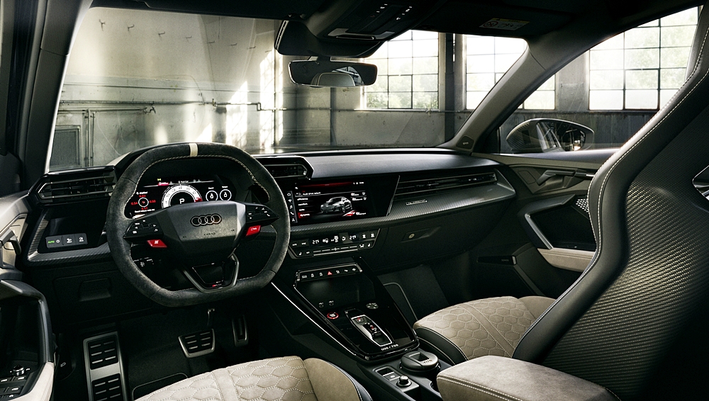 Penampilan luaran RS 3 competition limited dibezakan dengan penggunaan elemen karbon kusam pada segenap badan kereta.