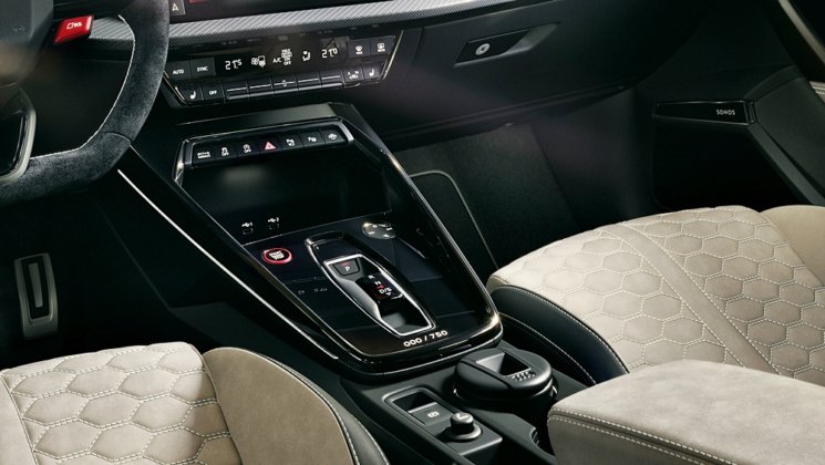 Pemandu dan penumpang disediajab kerusi sport bucket RS yang dibalut kulit hitam dengan bahagian tengah menggunakan mikrofiber Dinamica berwarna Neodymium gold.