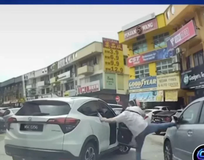 Terdahulu tular video memaparkan lelaki memandu Honda HR-V keluar dari kereta sebelum merosakkan cermin sisi kereta lain sebelum dia beredar.