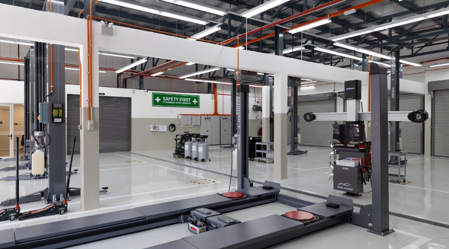 Pusat servis di lokasi ini turut dilengkapi dengan 5 ruang kerja servis, 1 ruang penjajaran roda dan 3 ruang penerimaan servis.