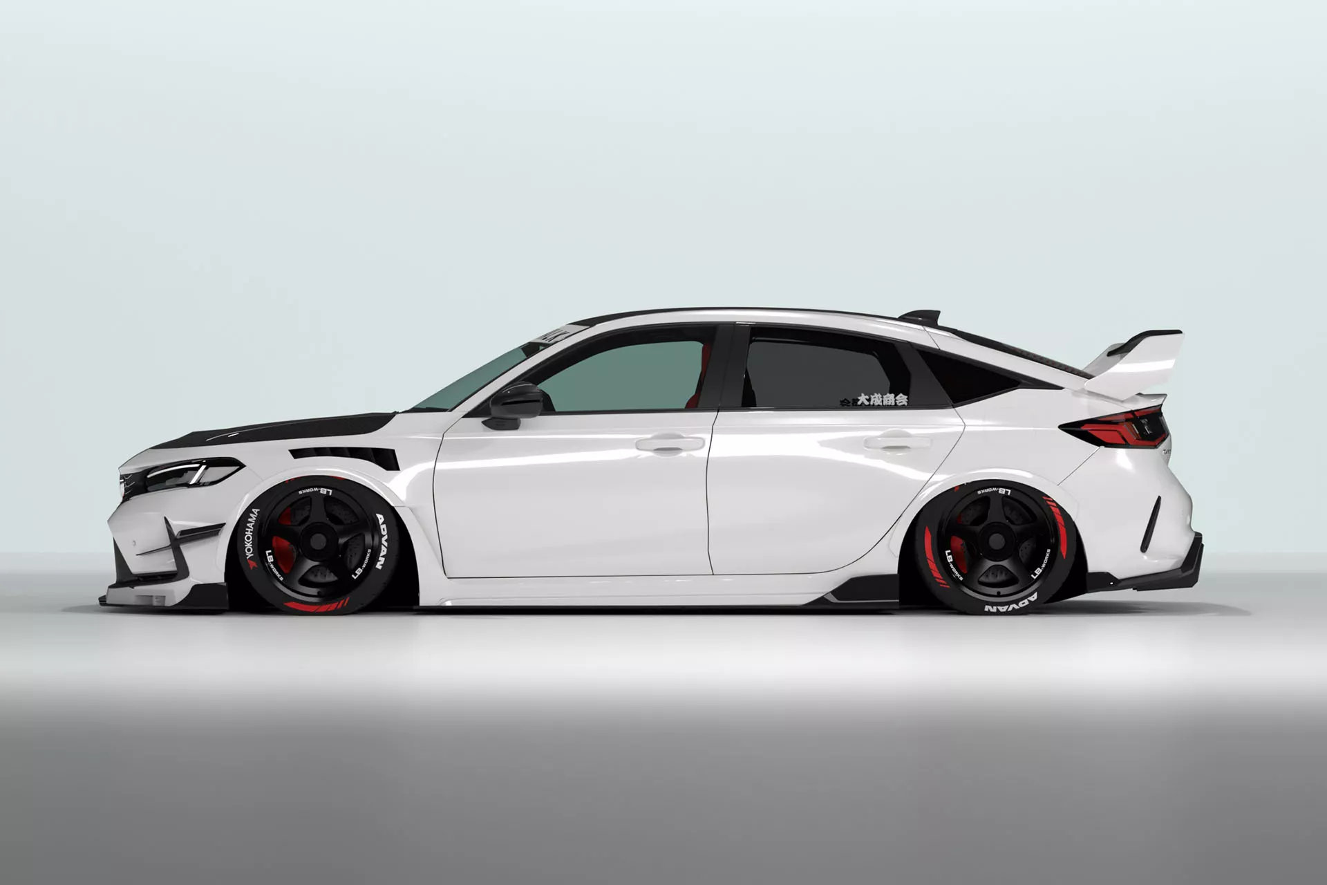 Versi kit badan lebar pula menambah set fender labuh (+10 mm lebar), serta louver pada panel suku hadapan untuk aliran udara yang lebih baik.